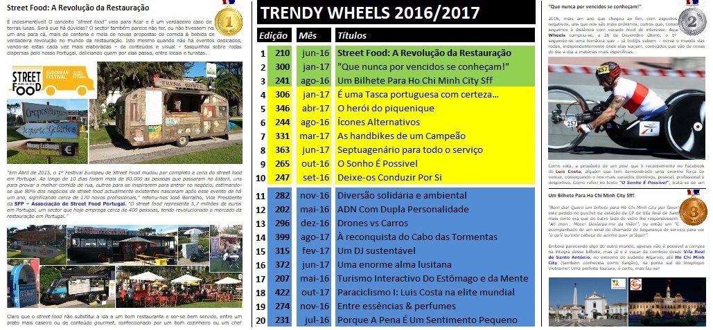PS.1: A título de referência, é este o top-20 dos textos mais lidos, com uma forte presença das temáticas do streetfood, do paraciclismo e das viagens...